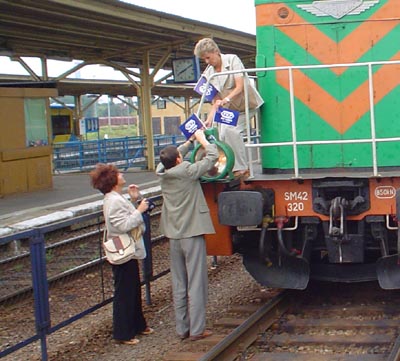 Nasz Pociąg dawał okazję do podróży innej niż zwykle. Była to podróż linią, po której od kwietnia 2000 r. nie przejechał żaden stały pociag pasażerski. Skoro zatem mieliśmy niezwykły Pociąg, niezwykłe były też powody, dla których jechał.